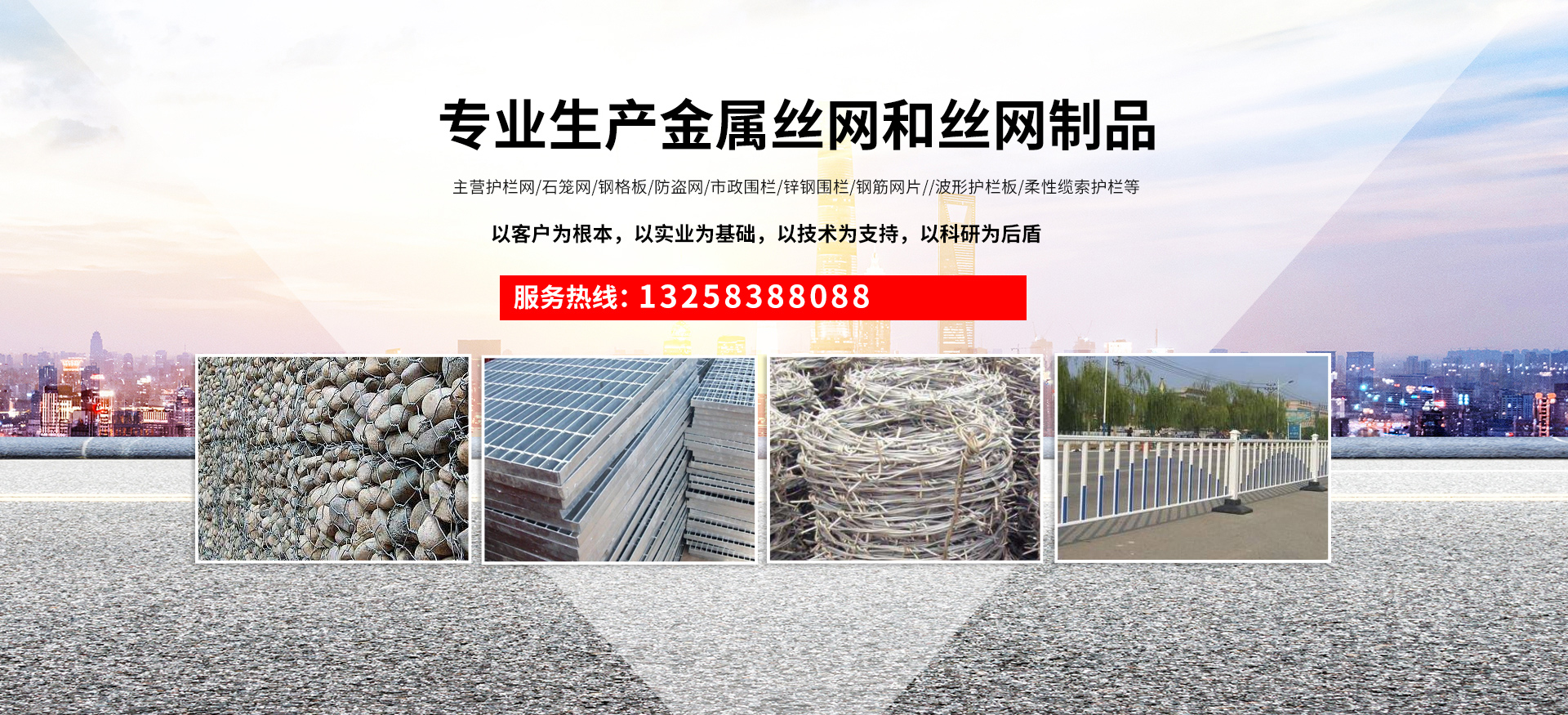 成都宏旭金屬絲網(wǎng)制造有限公司主營(yíng)護(hù)欄網(wǎng)系列、石籠網(wǎng)系列、鋼格板、防盜網(wǎng)、市政圍欄、鋅鋼圍欄、鋼筋網(wǎng)片、聲屏障系列、波形護(hù)欄板、柔性纜索護(hù)欄、SNS邊坡防護(hù)網(wǎng)等其他絲網(wǎng)類產(chǎn)品。特殊規(guī)格可加工定做,也可根據(jù)客戶來(lái)圖來(lái)樣定做。自創(chuàng)業(yè)以來(lái),公司一直堅(jiān)持市場(chǎng)為導(dǎo)向,以客戶為根本,以實(shí)業(yè)為基礎(chǔ),以技術(shù)為支持,以科研為后盾,集科研、生產(chǎn)、經(jīng)營(yíng)為一體,不斷研制開發(fā)新產(chǎn)品,開拓市場(chǎng),走綜合發(fā)展之路。多年來(lái),公司憑借過硬的質(zhì)量,良好的信譽(yù)、優(yōu)質(zhì)的服務(wù)、合理的價(jià)格,贏得了市場(chǎng)和商家的一致好評(píng)。